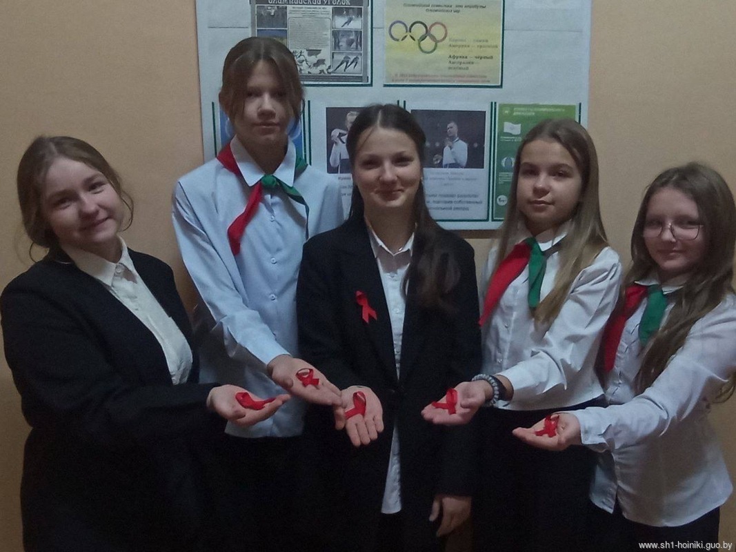 В средней школе №1 г.Хойники состоялась акция "Красная ленточка". Ленточка символизирует поддержку людей, живущих с ВИЧ. День подчеркивает необходимость информированности и медицинских достижений в борьбе с заболеванием.